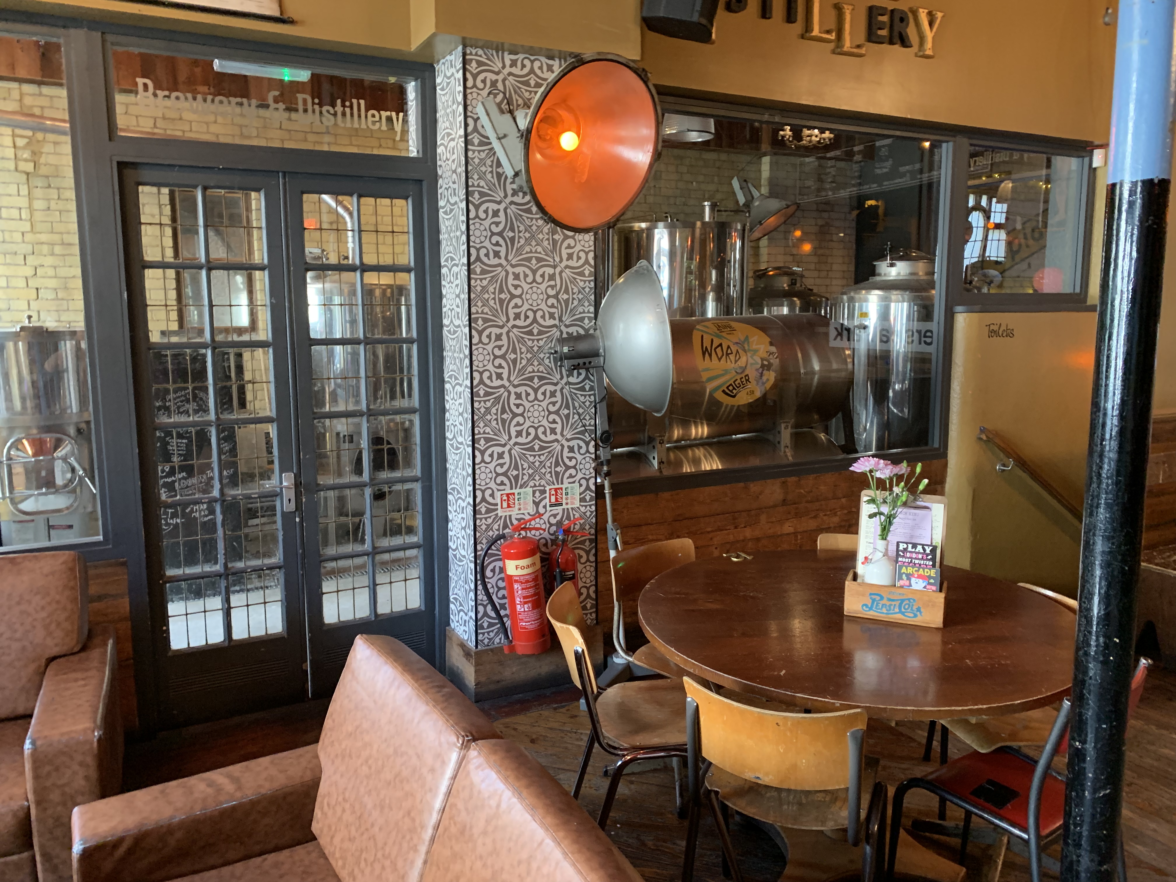 There are usually enough seats and tables around to find somewhere to perch, but grab them quickly lest you be left standing. While one of you goes to grab drinks that’ll leave the other person time to look around them and appreciate the microbrewery vats and pipes and all the quirky art on the walls.