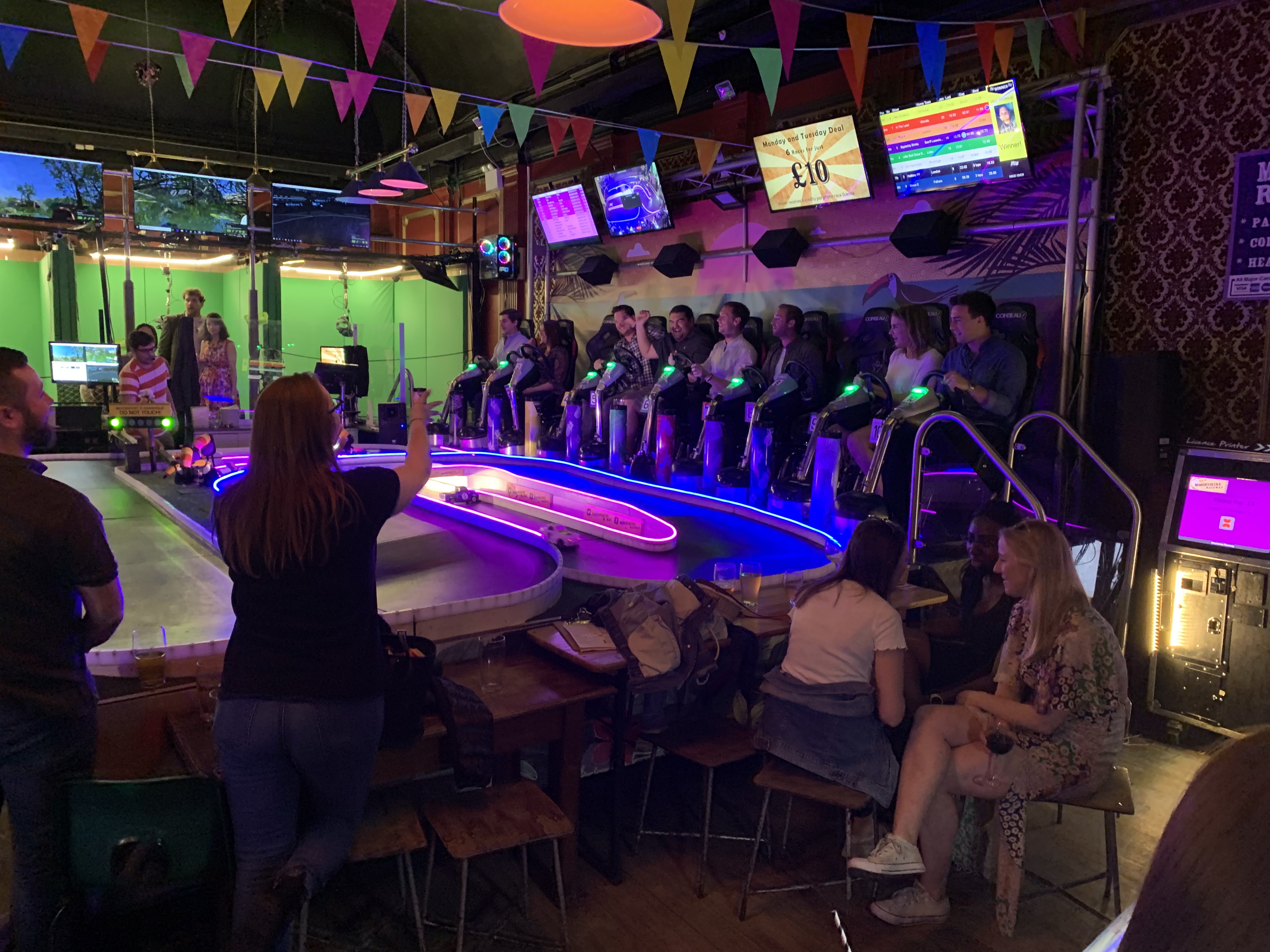 The best things, however, do cost a couple of quid. Dominating a quarter of the room is a giant remote control race car track. Eight or so drivers at a time file into race seats with a steering wheel and pedals in front of them in order to steer their remote control cars around the racecourse in record time, complete with commentary and often an appreciative crowd. It’s more difficult than it looks as you lose your car amongst the chaos all of the others bring, but is perfect for bringing out the competitive side in you.